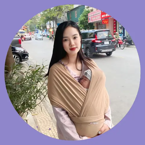 Địu đẹp mặc dễ chịu cả mẹ và bé. Vải cotton thấm hút tốt nên không bị bí hay nóng như mọi người hay sợ.