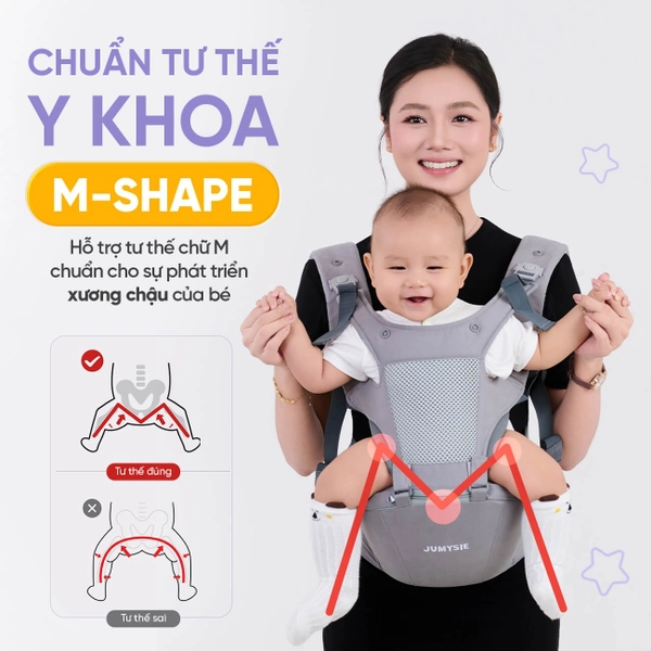 Địu Em Bé Jumysie M8 là dòng sản phẩm cao cấp được thiết kế dành riêng cho các bé từ 0-36 tháng tuổi, kết hợp hoàn hảo giữa công nghệ Ergonomic tiên tiến và chất liệu Air Mesh 4D siêu thoáng khí. Đây không chỉ đơn thuần là một chiếc địu em bé, mà là giải pháp toàn diện giúp giảm 40% áp lực vai lưng cho mẹ và đảm bảo tư thế ngồi chuẩn M-Shape cho sự phát triển khỏe mạnh của bé.